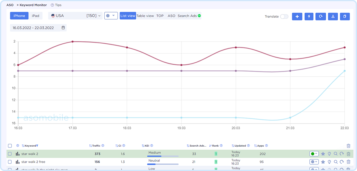 Track the position of the app by keywords