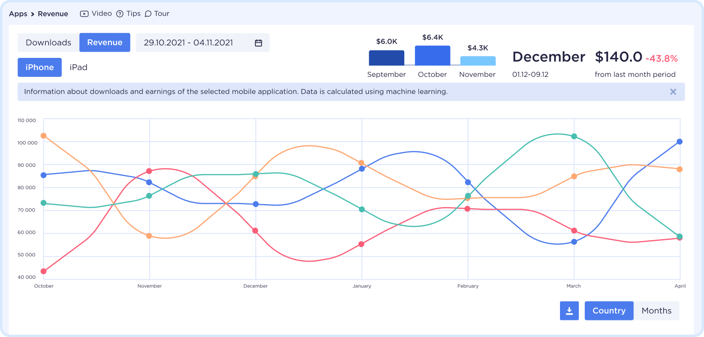 Compare your app downloads with competitors to find insights