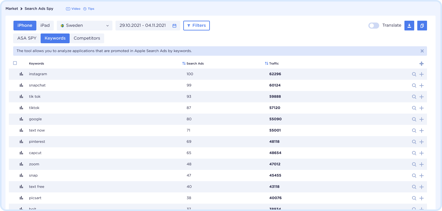 - Check which apps are being promoted in ASA by any keyword